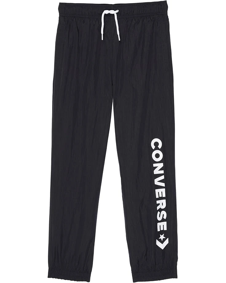 Ideal for budding athletes, the Converse® Kids Wordmark Woven Pants would keep your little one comfortable for hours. SKU: #9630259Elasticized waist with a drawstring. On-seam pockets on the front.Converse® Wordmark logo on left leg.Ribbed cuffs. 100% nylon. Machine wash, tumble dry.Imported. Product measurements were taken using size 7 Little Kids. Please note that measurements may vary by size.Measurements: