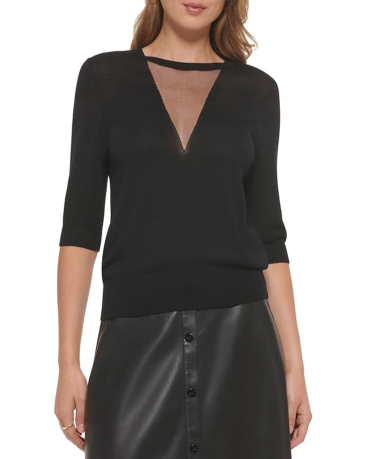 DKNY Short Sleeve Mesh V Crew Neck Sweater